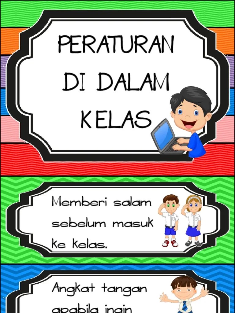 Peraturan di dalam kelas, contoh tata tertib kelas, membuat peraturan kelas, peraturan kelas sekolah dasar, aturan kelas keren, menempatkan aturan kelas. Siswa harus berada di dalam kelas paling lambat 10 menit sebelum . Ketua kelas bertanggung jawab terhadap kinerja petugas piket.